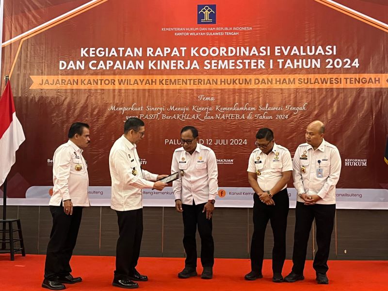 Penghargaan ini diberikan dalam Kegiatan Rapat Koordinasi, Evaluasi, dan Capaian Kinerja Semester I Tahun 2024 Tingkat Kantor Wilayah Kementerian Hukum dan HAM Sulawesi Tengah, Rabu (10/7/2024).