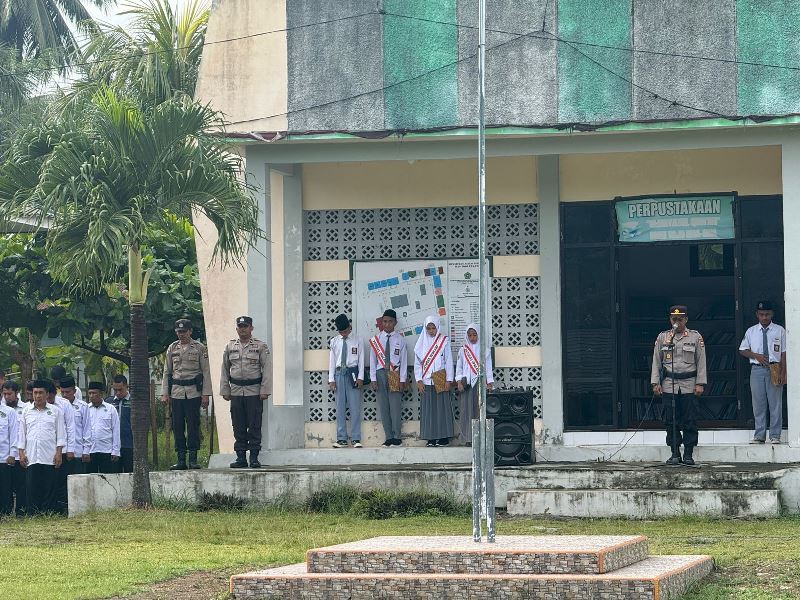 AKP Agus Habibie didampingi oleh tim dari Sat Binmas, termasuk KBO Binmas Aiptu Sempo dan beberapa anggota lainnya, memanfaatkan momen upacara ini untuk menyampaikan tiga poin utama penekanan kepada ratusan pelajar.