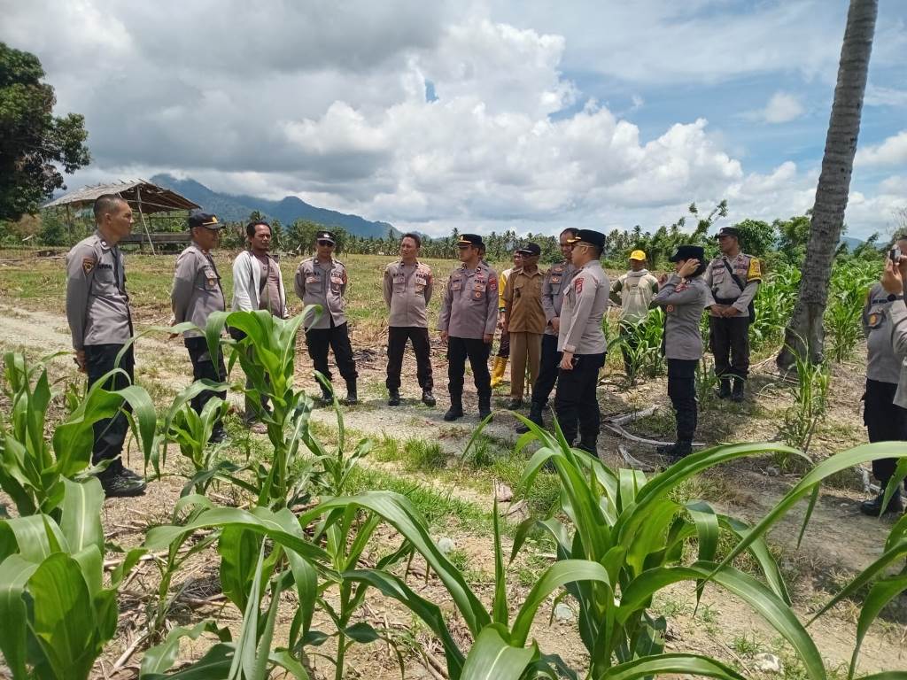 Update Sulteng, TOUNA – Kabag SDM Polres Tojo Una-Una (Touna), AKP M. Natsir, S.H., mendampingi Tim Biro SDM Polda Sulawesi Tengah melakukan pengecekan langsung terhadap perkembangan lahan jagung binaan Polsek Ampana Kota yang berlokasi di Desa Sabulira Toba, Kecamatan Ratolindo, pada Selasa (7/4/2026).